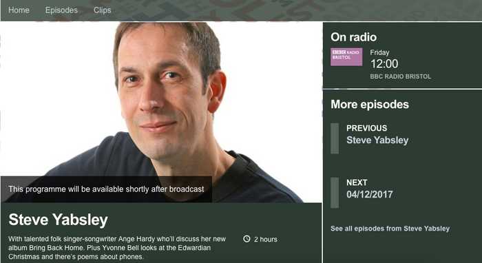 RADIO : Live Interview on BBC Radio Bristol with Steve Yabsley