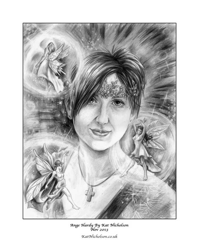 The lovely Kat Nicholson drew this stunning pencil portrait of me after finding me through the land of twitter and my music. The week she came to me with her ideas was the week I had just been to Glastonbury to play at the Assembly rooms when I was on the 'Bare Foot Folk' tour and I was full of the magic of the mythical world that I had stepped into. I asked for fairies :)