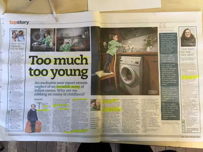 According to Carer's Trust Charity, there are over 40,000 carers aged 8 or under in the UK. We read one article a five-year-old carer.