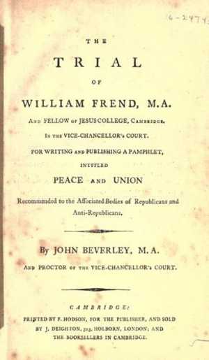Whilst Coleridge was an undergraduate at Cambridge one of the tutors at the college, William Frend, was put on trial for publishing a leaflet speaking out against the liturgy of the Church. There’s a beautiful story that during that trial Coleridge applauded raucously from the balcony, deliberately to enrage the judge, before quickly switching places with a one-armed man who was blamed instead. At the time Frend and Coleridge were united by the hope that The French Revolution would echo the success of The Glorious Revolution that preceded it.